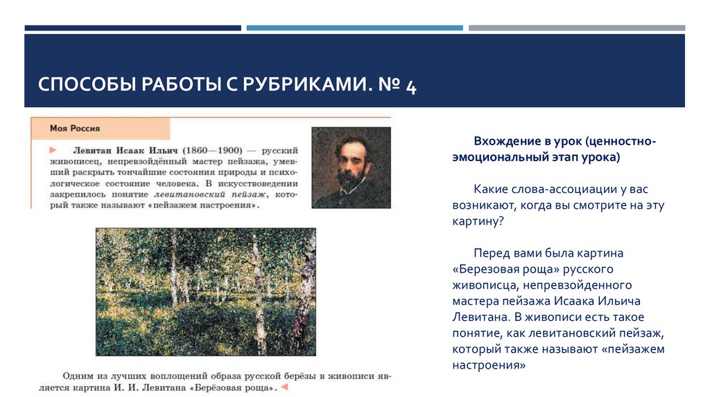 СПОСОБЫ РАБОТЫ С РУБРИКАМИ. № 4Вхождение в урок (ценностноэмоциональный этап урока)