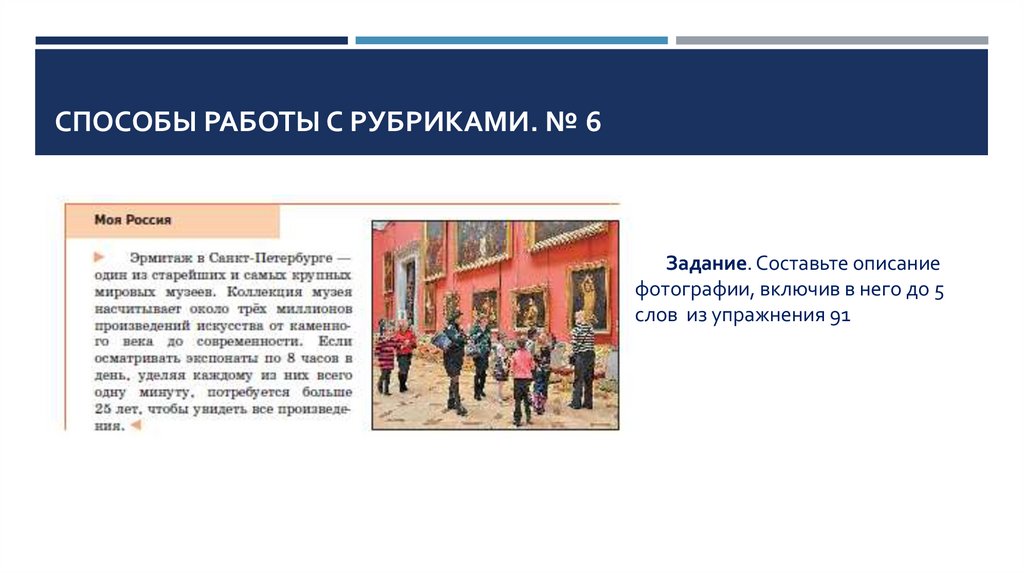 СПОСОБЫ РАБОТЫ С РУБРИКАМИ. № 6Задание. Составьте описание