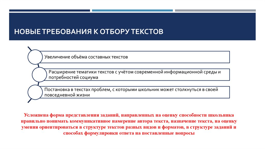 НОВЫЕ ТРЕБОВАНИЯ К ОТБОРУ ТЕКСТОВУвеличение объёма составных текстов