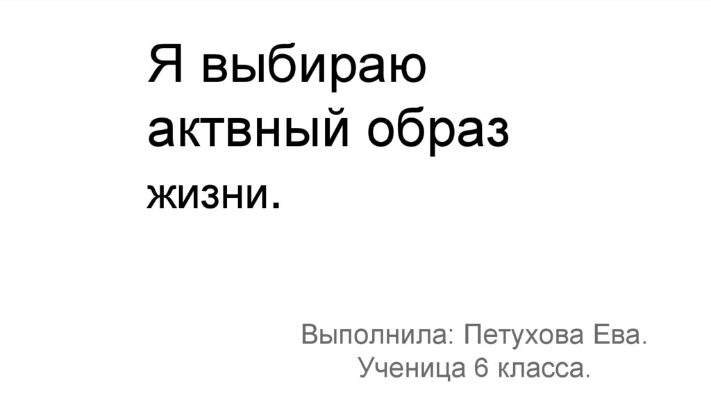 Я выбираю актвный образ жизни. 6 класс