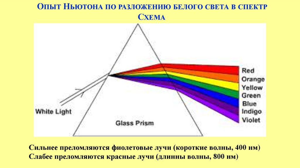 ОПЫТ НЬЮТОНА ПО РАЗЛОЖЕНИЮ БЕЛОГО СВЕТА В СПЕКТРСХЕМА