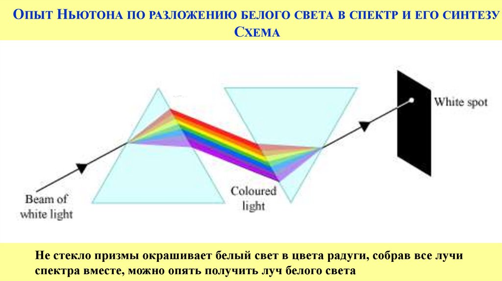 ОПЫТ НЬЮТОНА ПО РАЗЛОЖЕНИЮ БЕЛОГО СВЕТА В СПЕКТР И ЕГО СИНТЕЗУСХЕМА