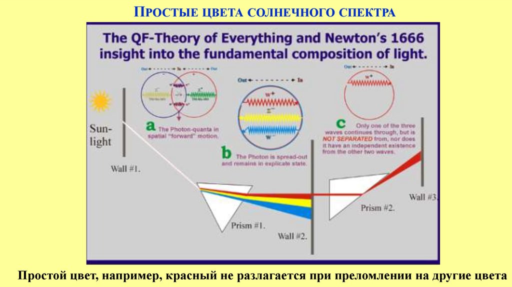 ПРОСТЫЕ ЦВЕТА СОЛНЕЧНОГО СПЕКТРАПростой цвет, например, красный не разлагается при преломлении на другие цвета
