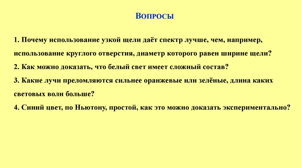 ВОПРОСЫ1. Почему использование узкой щели даёт спектр лучше, чем, например,