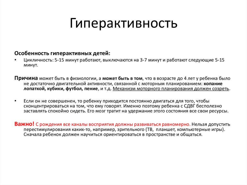 заставлять спокойно сидеть. Его мозг тратит на удержание этого состояния все свои ресурсы.