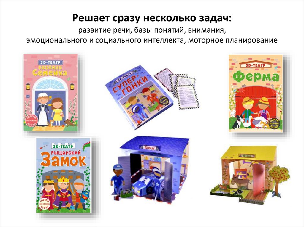 Решает сразу несколько задач:развитие речи, базы понятий, внимания,