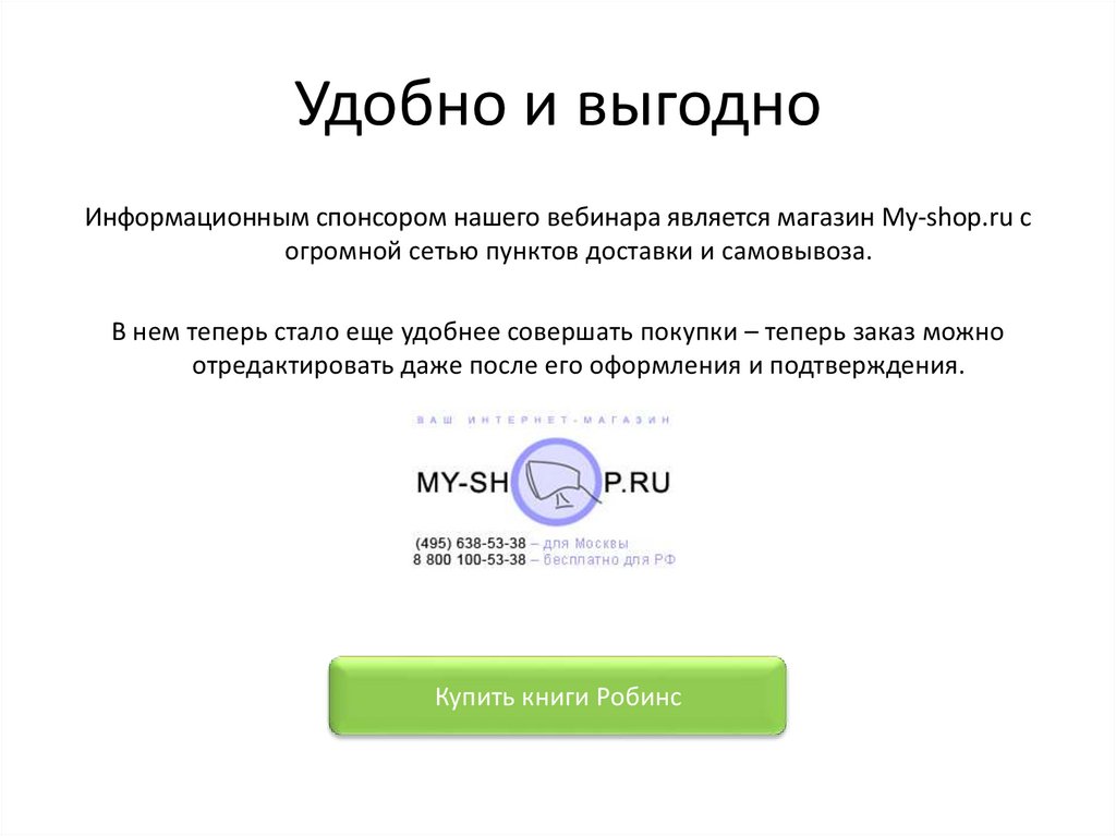 Удобно и выгодноИнформационным спонсором нашего вебинара является магазин My-shop.ru с