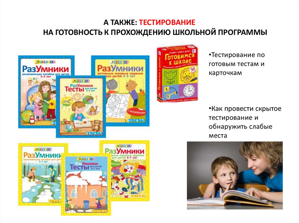 А ТАКЖЕ: ТЕСТИРОВАНИЕНА ГОТОВНОСТЬ К ПРОХОЖДЕНИЮ ШКОЛЬНОЙ ПРОГРАММЫ