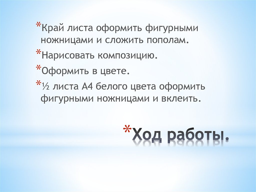 *Край листа оформить фигурныминожницами и сложить пополам.