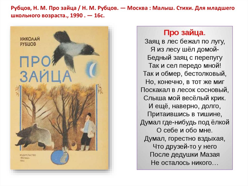 Рубцов, Н. М. Про зайца / Н. М. Рубцов. — Москва : Малыш. Стихи. Для младшего