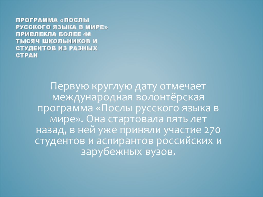 ПРОГРАММА «ПОСЛЫРУССКОГО ЯЗЫКА В МИРЕ»