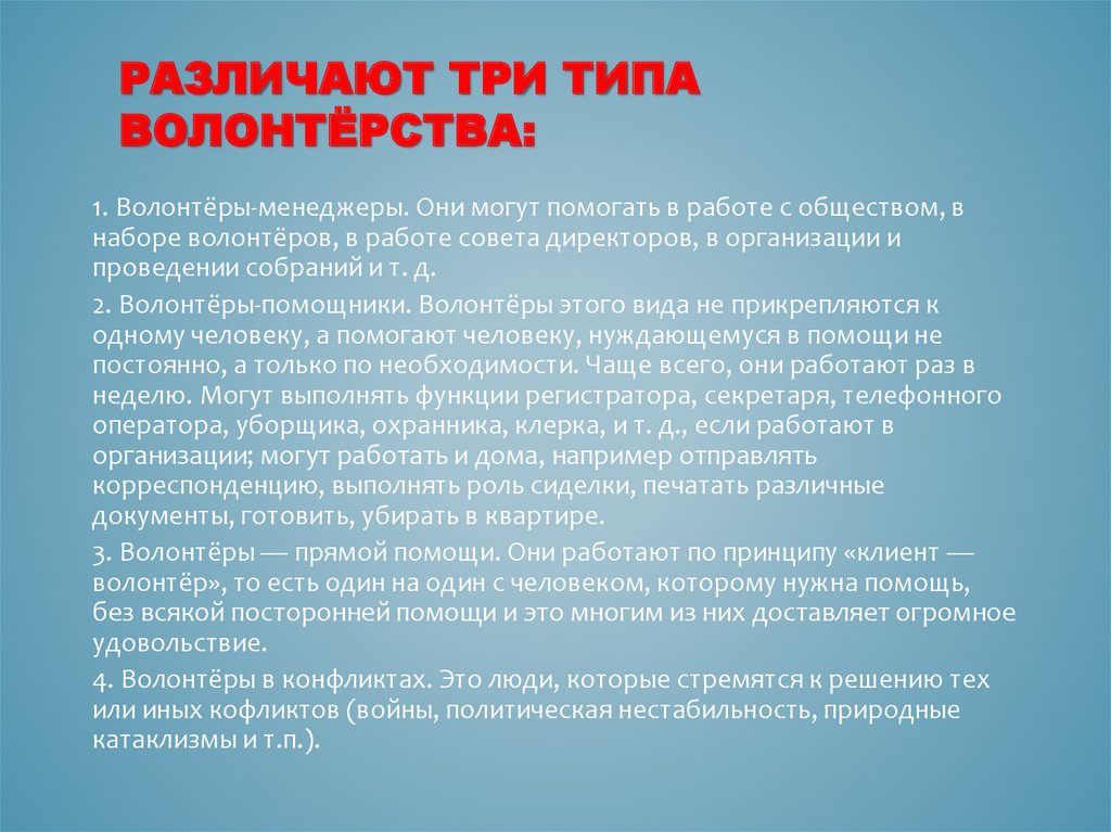 РАЗЛИЧАЮТ ТРИ ТИПАВОЛОНТЁРСТВА:
