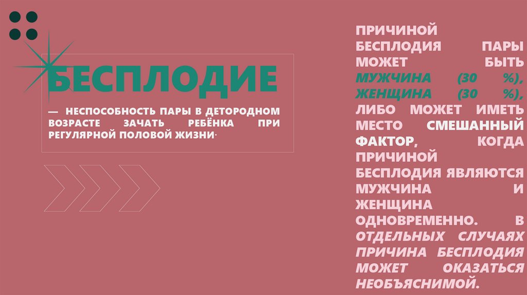 БЕСПЛОДИЕ— НЕСПОСОБНОСТЬ ПАРЫ В ДЕТОРОДНОМ