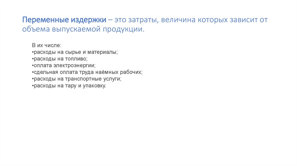 Переменные издержки – это затраты, величина которых зависит отобъема выпускаемой продукции.