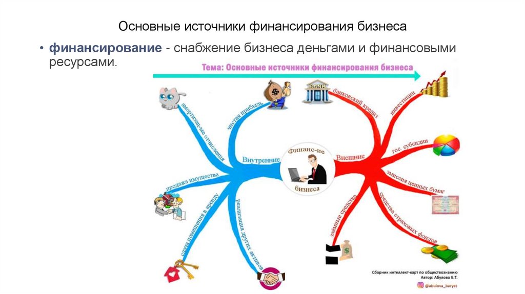 Основные источники финансирования бизнеса• финансирование - снабжение бизнеса деньгами и финансовыми