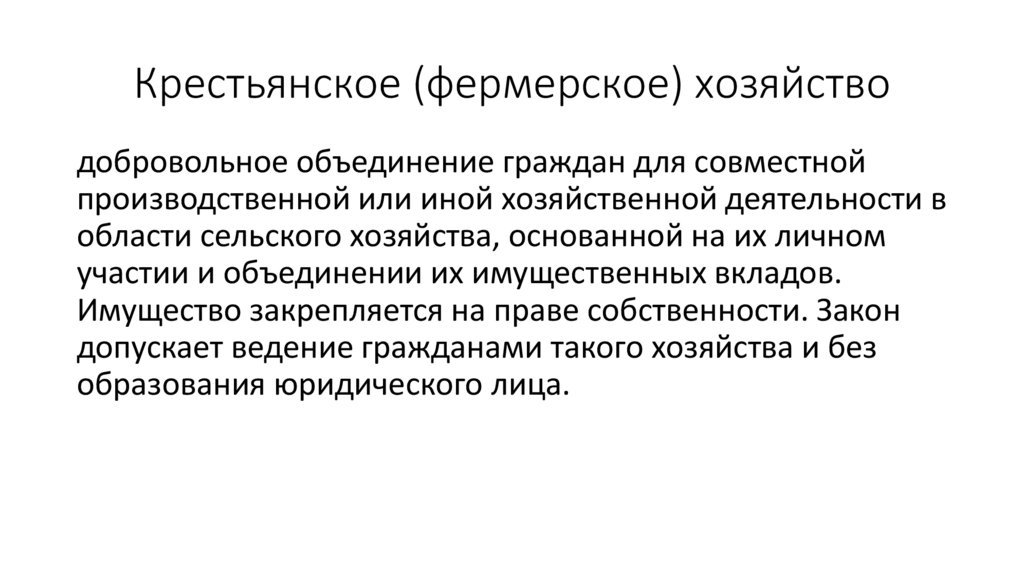 Крестьянское (фермерское) хозяйстводобровольное объединение граждан для совместной