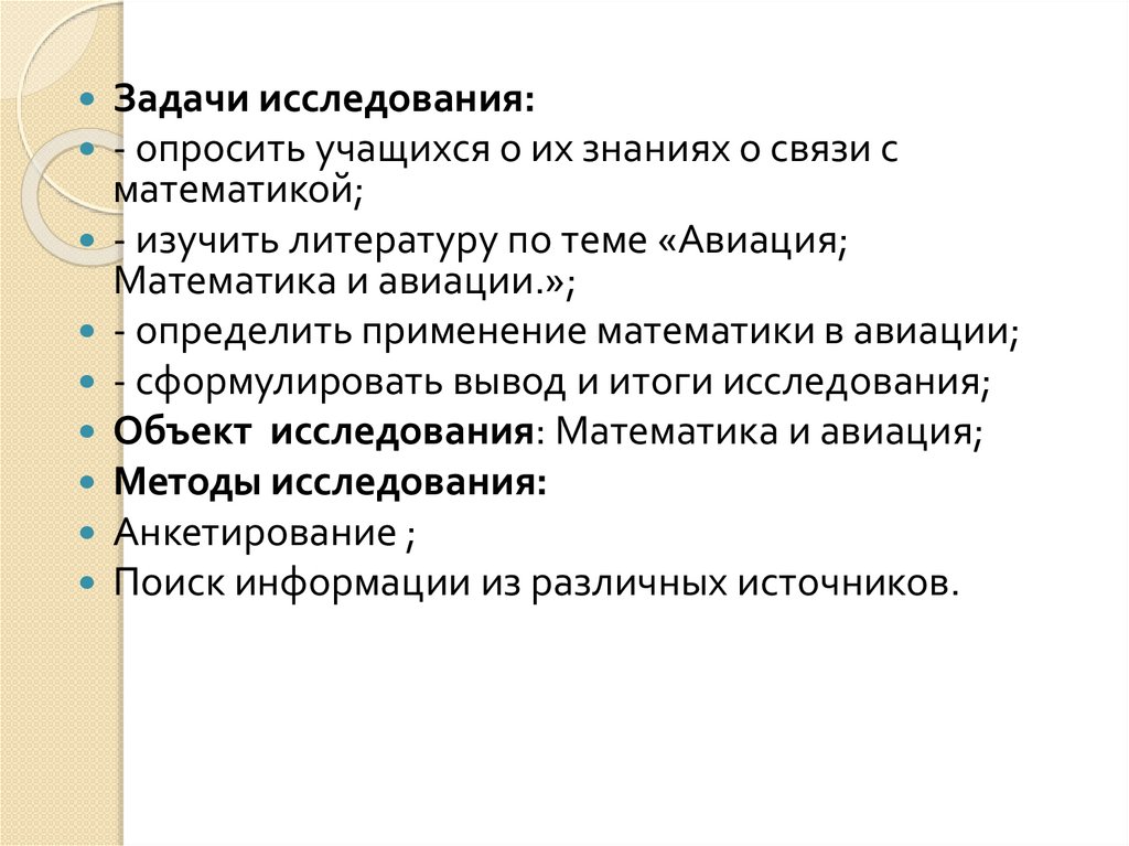 Объект исследования: Математика и авиация;