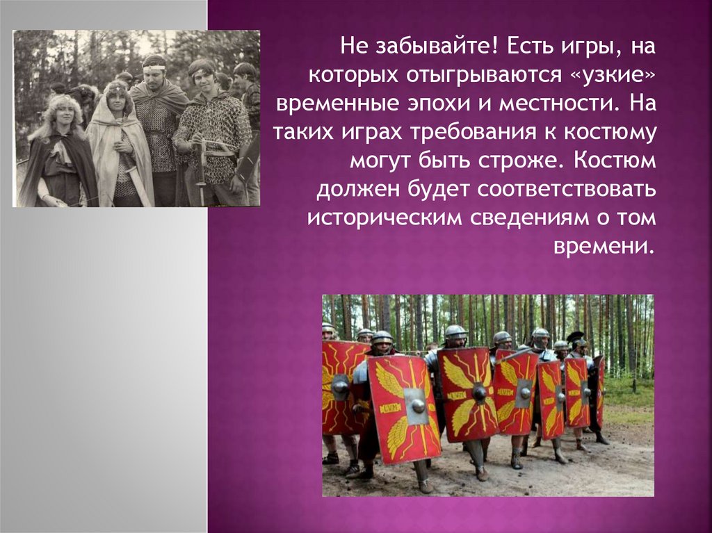1. Главное - игра: костюмы желательны, но не