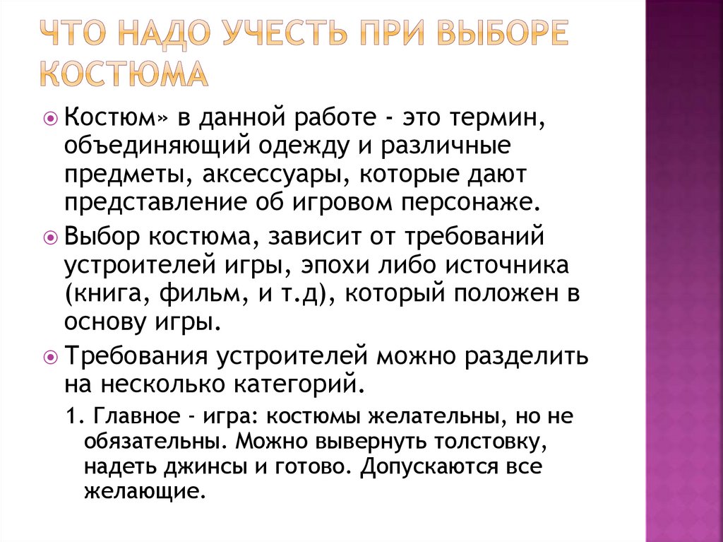 таких играх требования к костюму