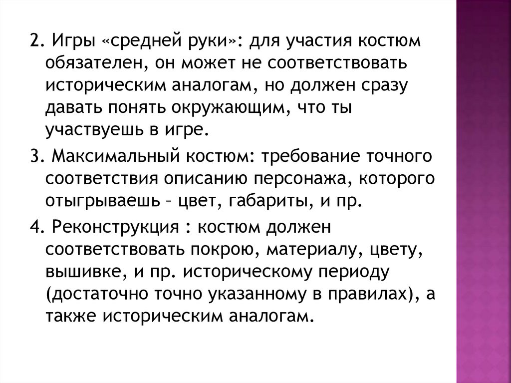 2. Игры «средней руки»: для участия костюмобязателен, он может не соответствовать