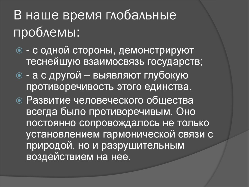 проблемы превратились в глобальные, выражающие противоречия