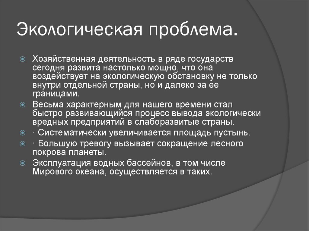 Экологическая проблема.Хозяйственная деятельность в ряде государств