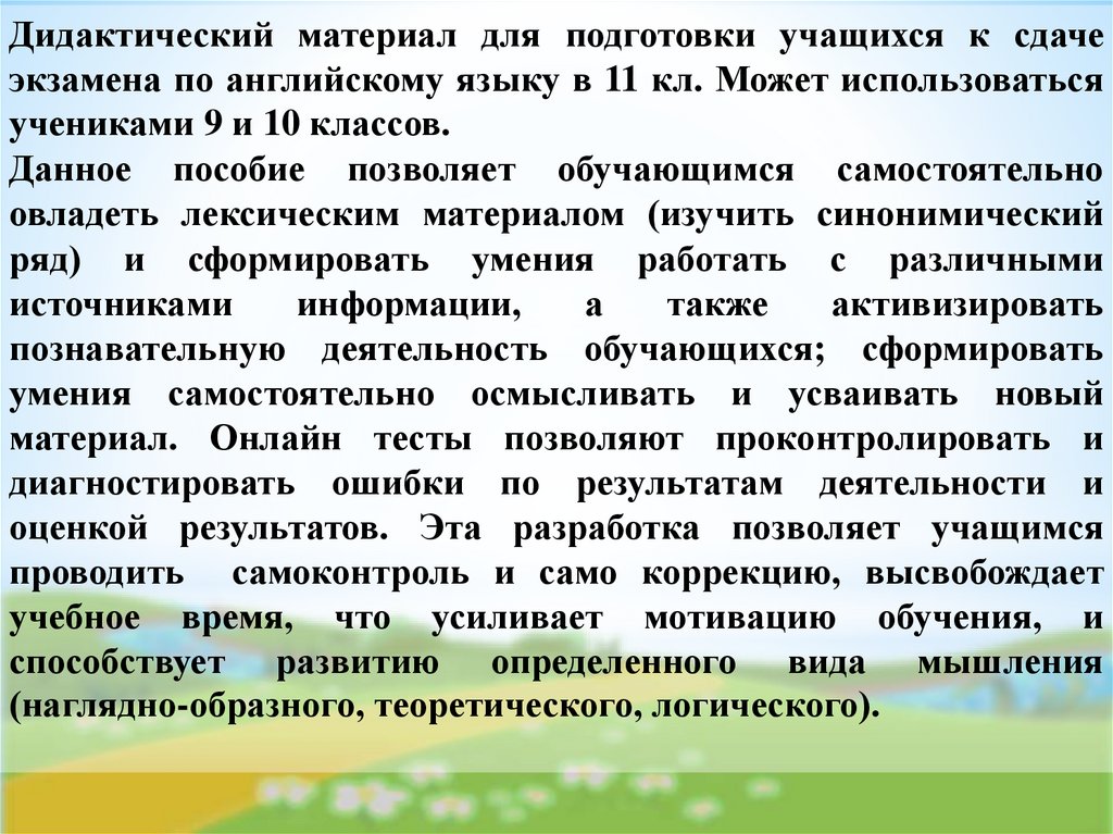 материал. Онлайн тесты позволяют проконтролировать и