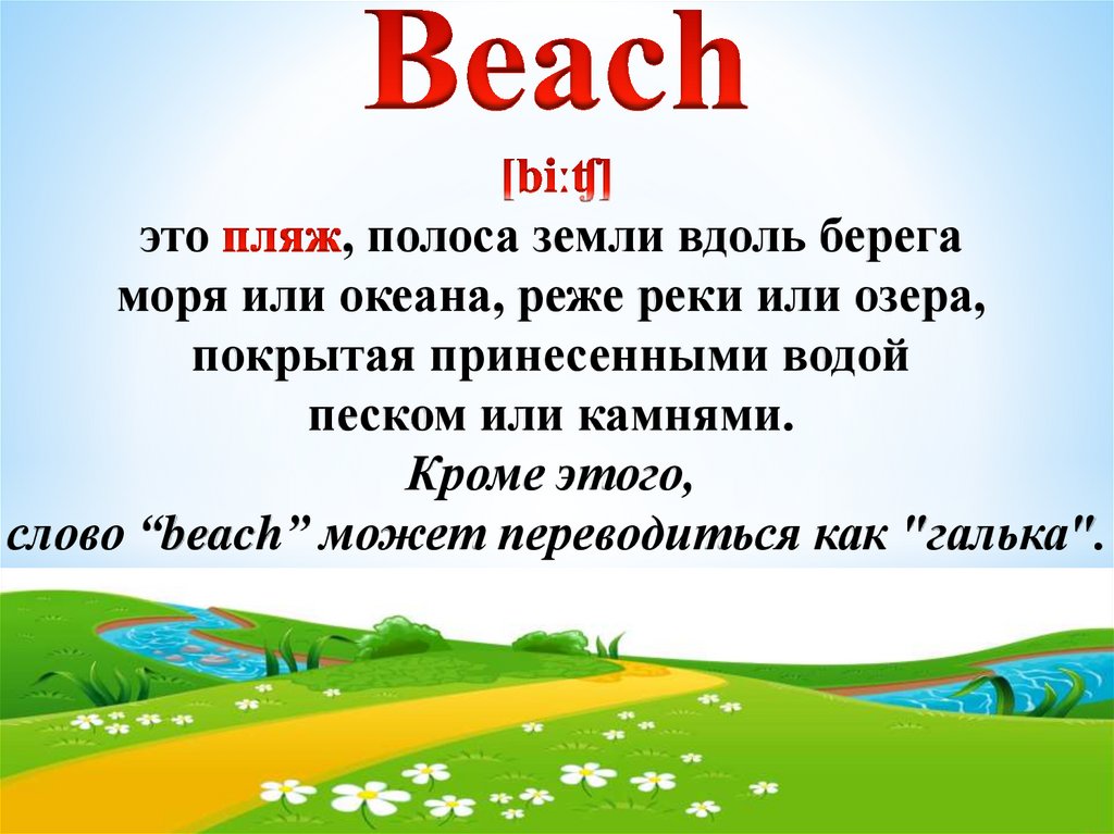 слово “beach” может переводиться как "галька".