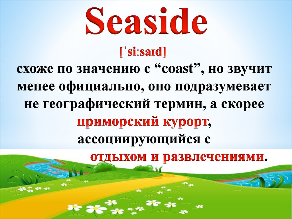 схоже по значению с “coast”, но звучитменее официально, оно подразумевает