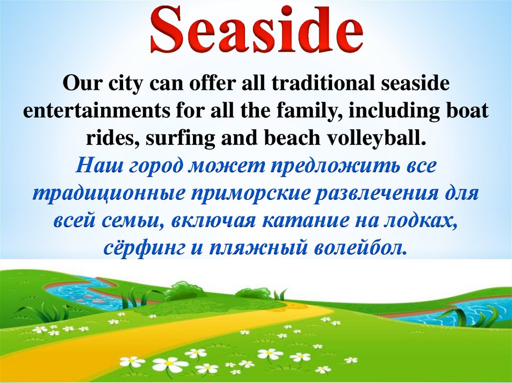 Our city can offer all traditional seasideentertainments for all the family, including boat