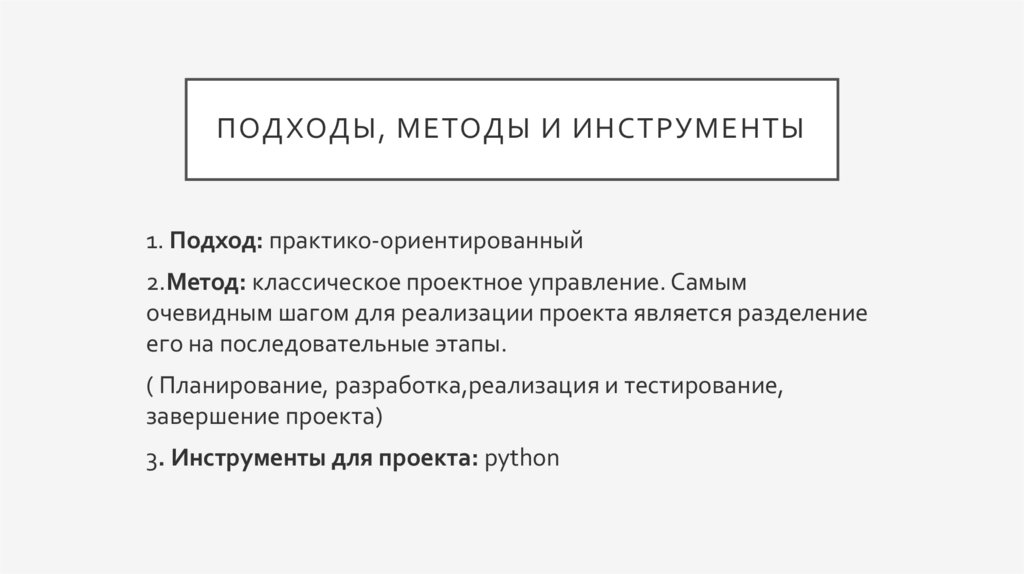 ПОДХОДЫ, МЕТОДЫ И ИНСТРУМЕНТЫ1. Подход: практико-ориентированный
