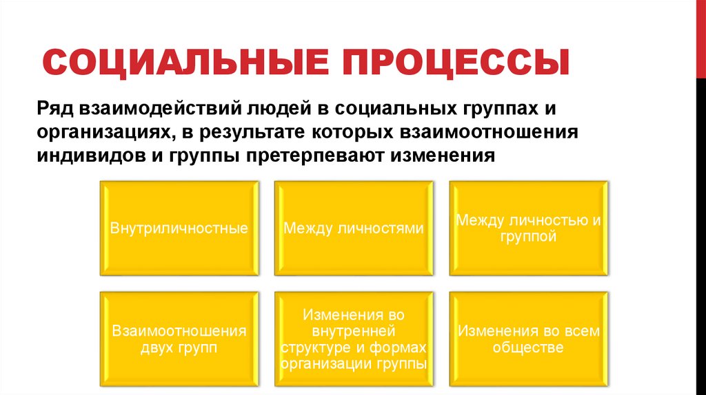 СОЦИАЛЬНЫЕ ПРОЦЕССЫРяд взаимодействий людей в социальных группах и