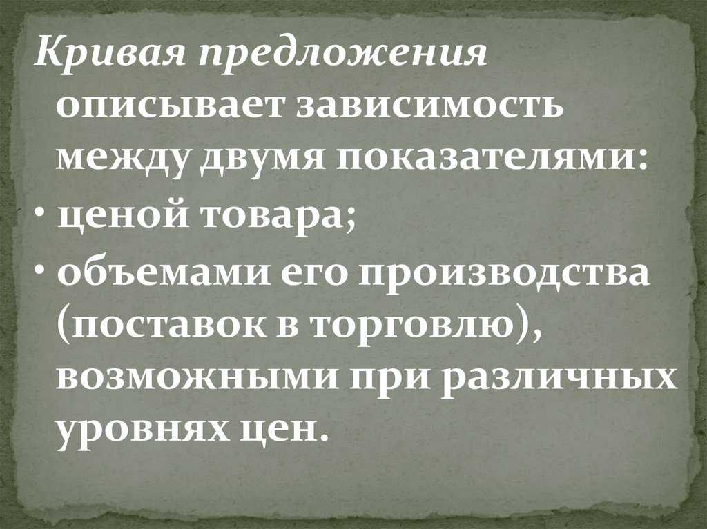 Кривая предложенияописывает зависимость