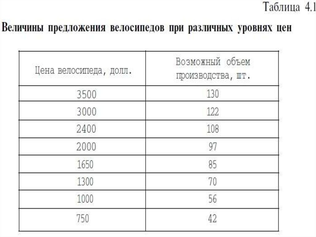 величины предложения