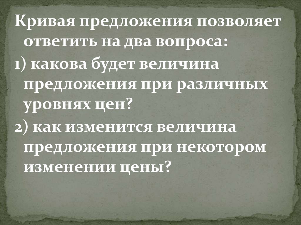 Кривая предложения позволяетответить на два вопроса: