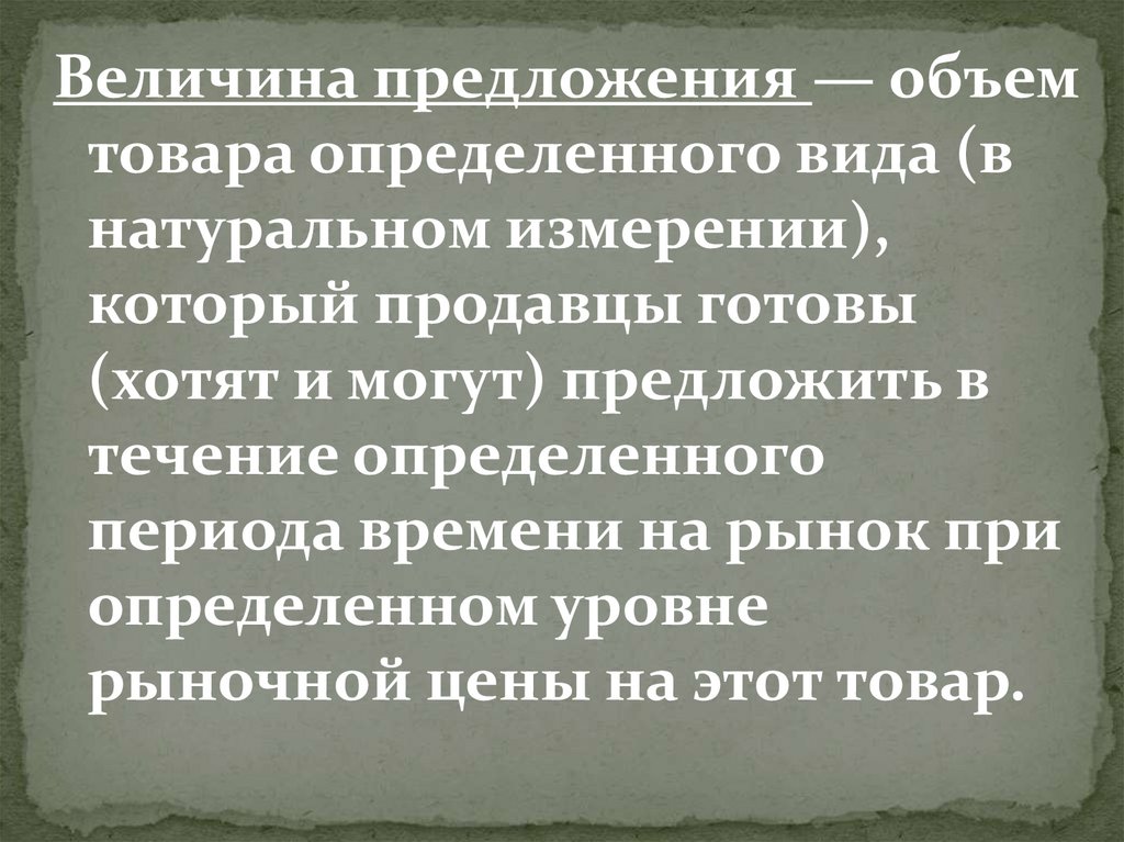 Величина предложения — объемтовара определенного вида (в