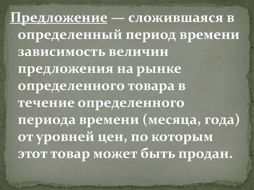 Предложение — сложившаяся вопределенный период времени