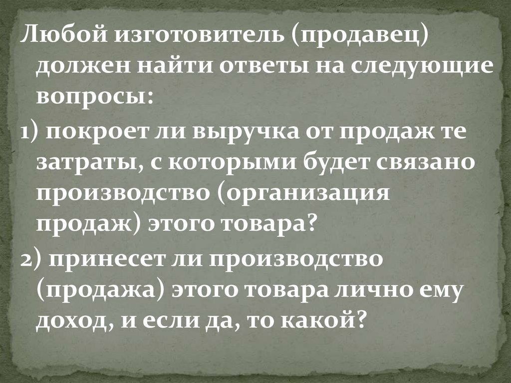Любой изготовитель (продавец)должен найти ответы на следующие