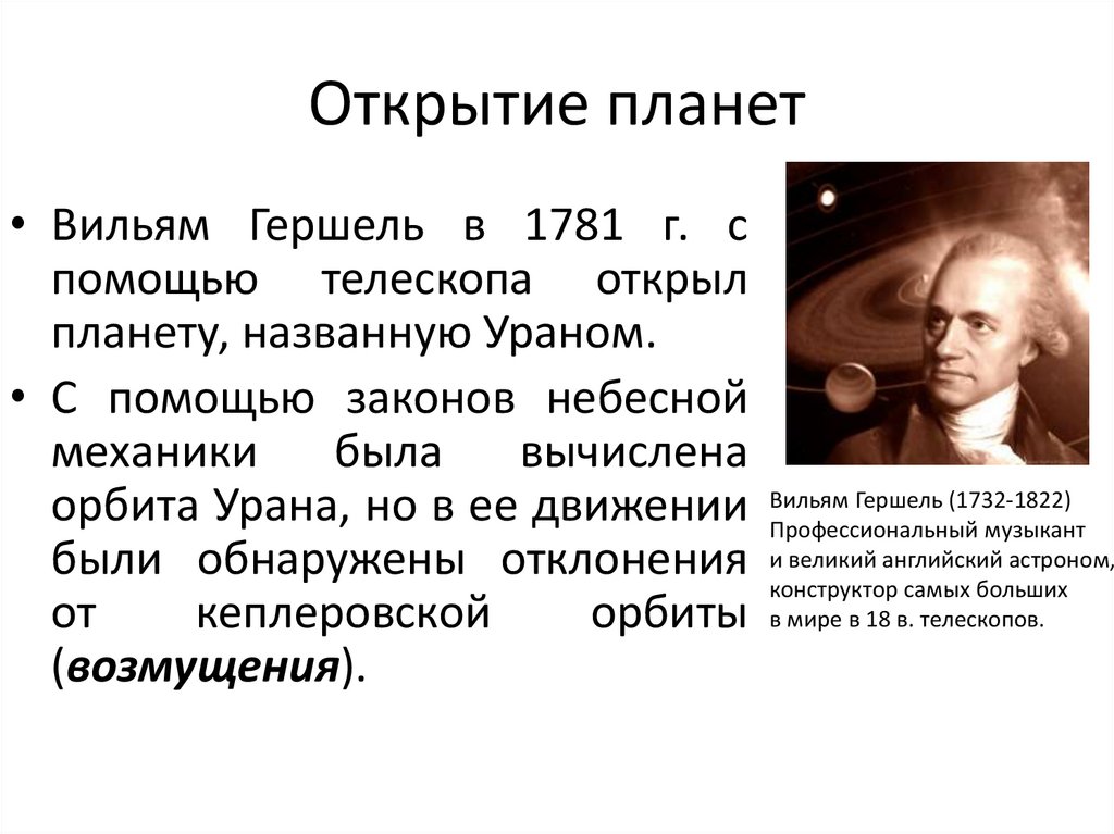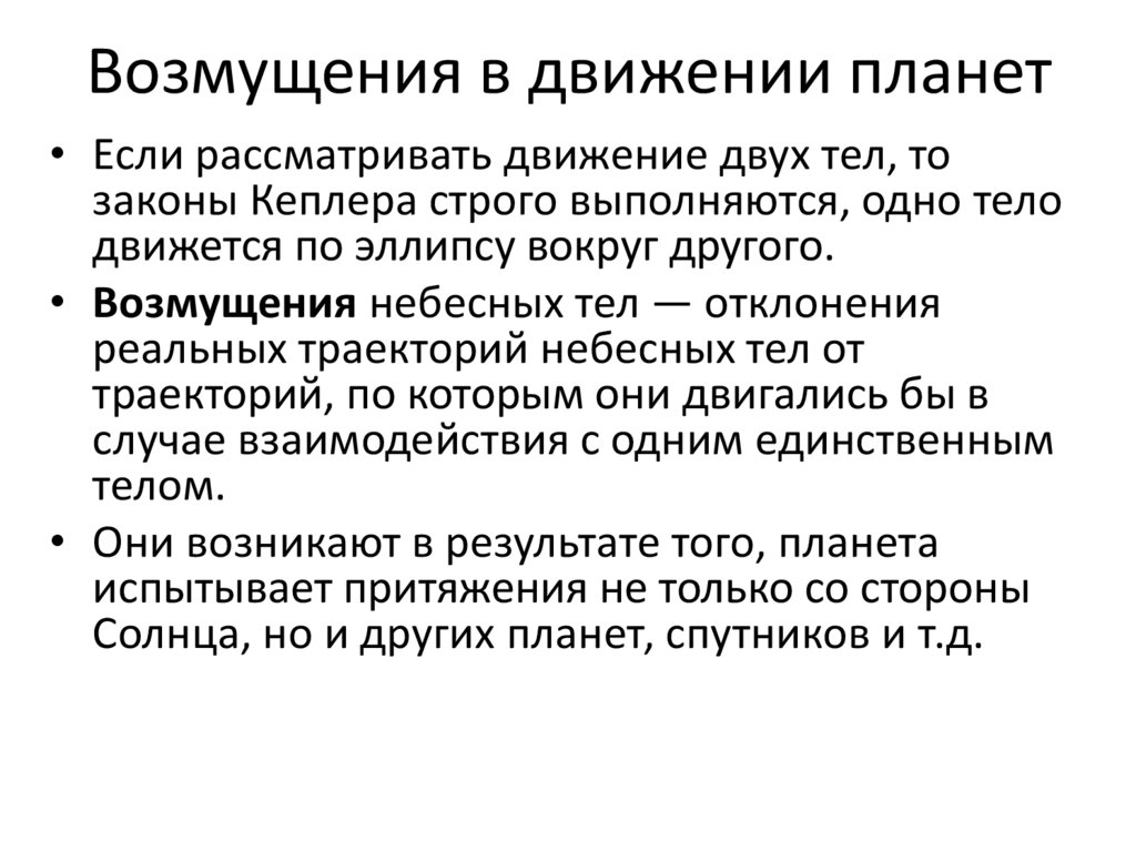 Возмущения в движении планет• Если рассматривать движение двух тел, то