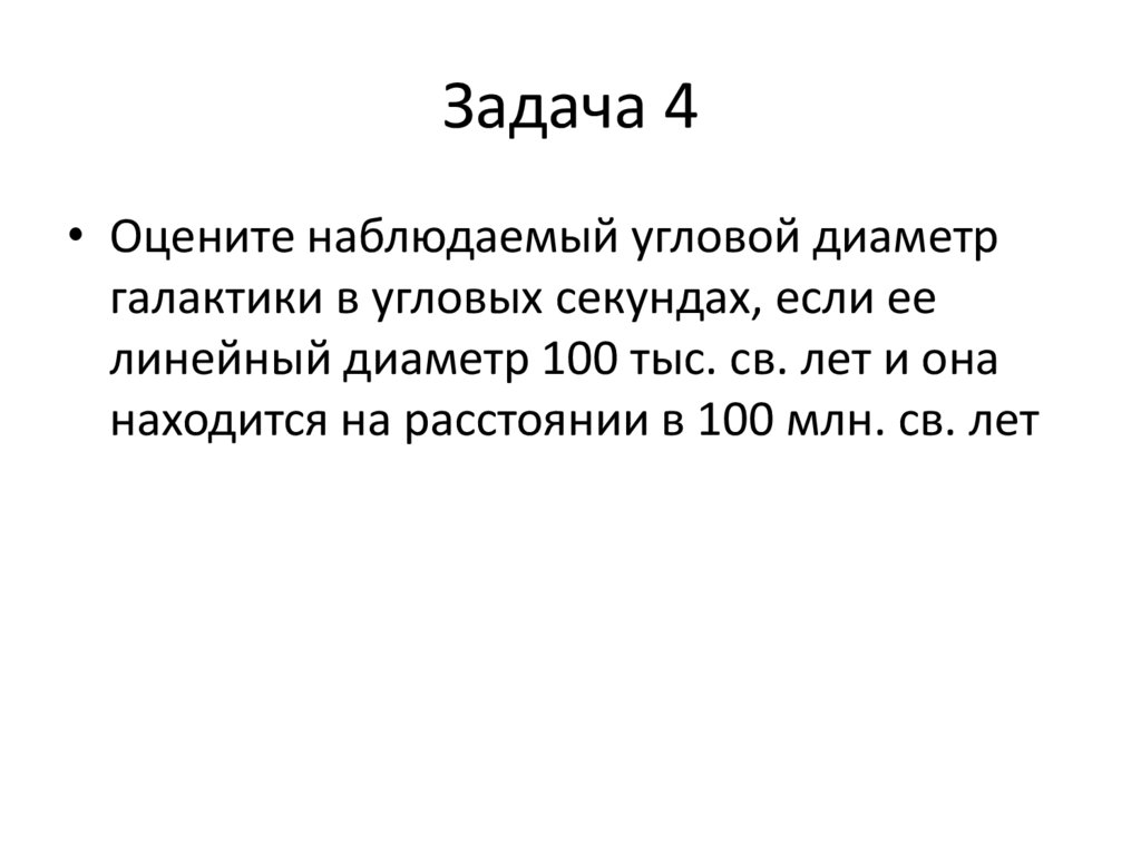 Задача 4• Оцените наблюдаемый угловой диаметр