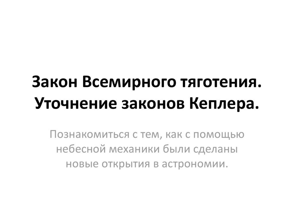 Закон Всемирного тяготения.Уточнение законов Кеплера.