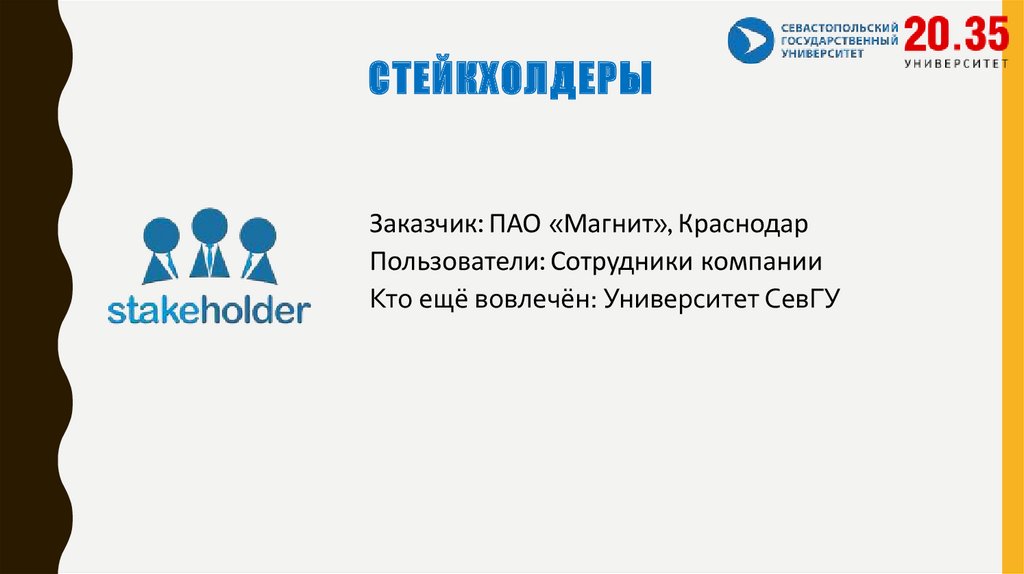 СТЕЙКХОЛДЕРЫЗаказчик: ПАО «Магнит», Краснодар