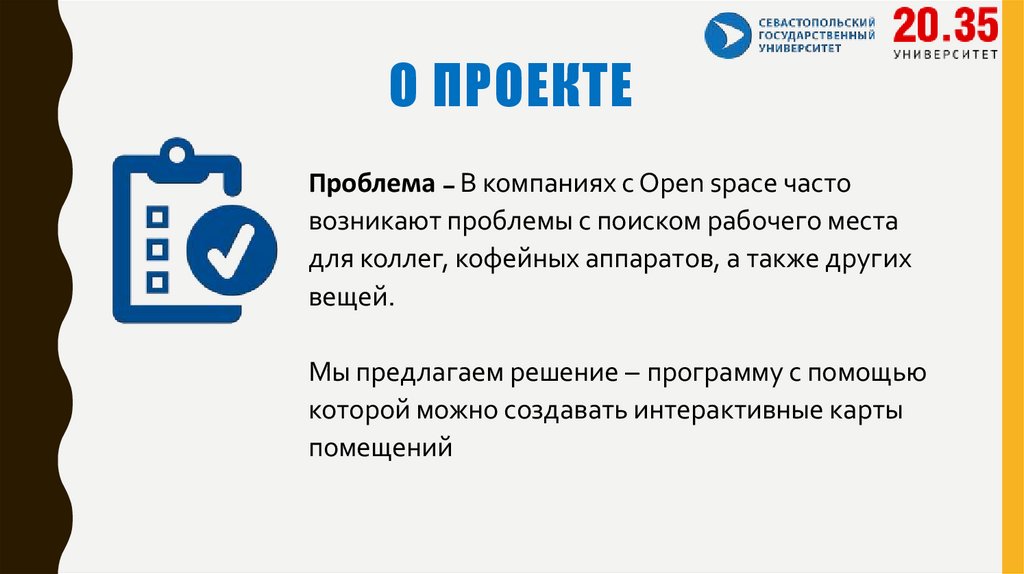 О ПРОЕКТЕПроблема – В компаниях с Open space часто