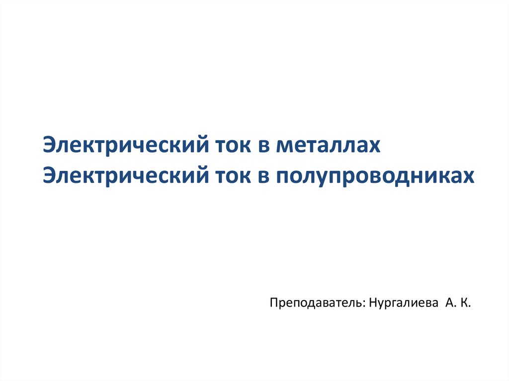 Электрический ток в металлах. Электрический ток в полупроводниках