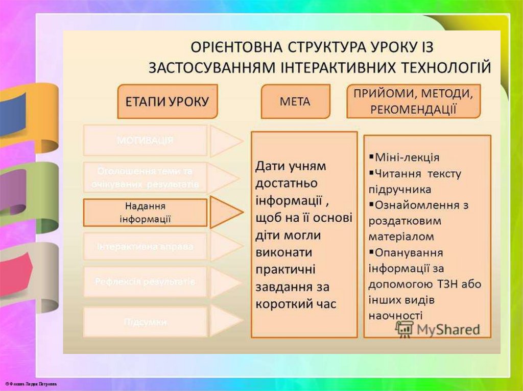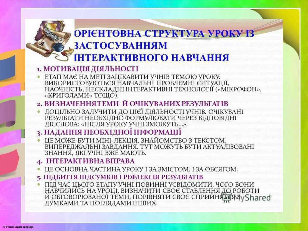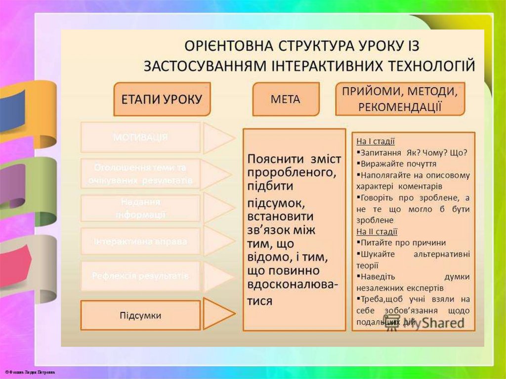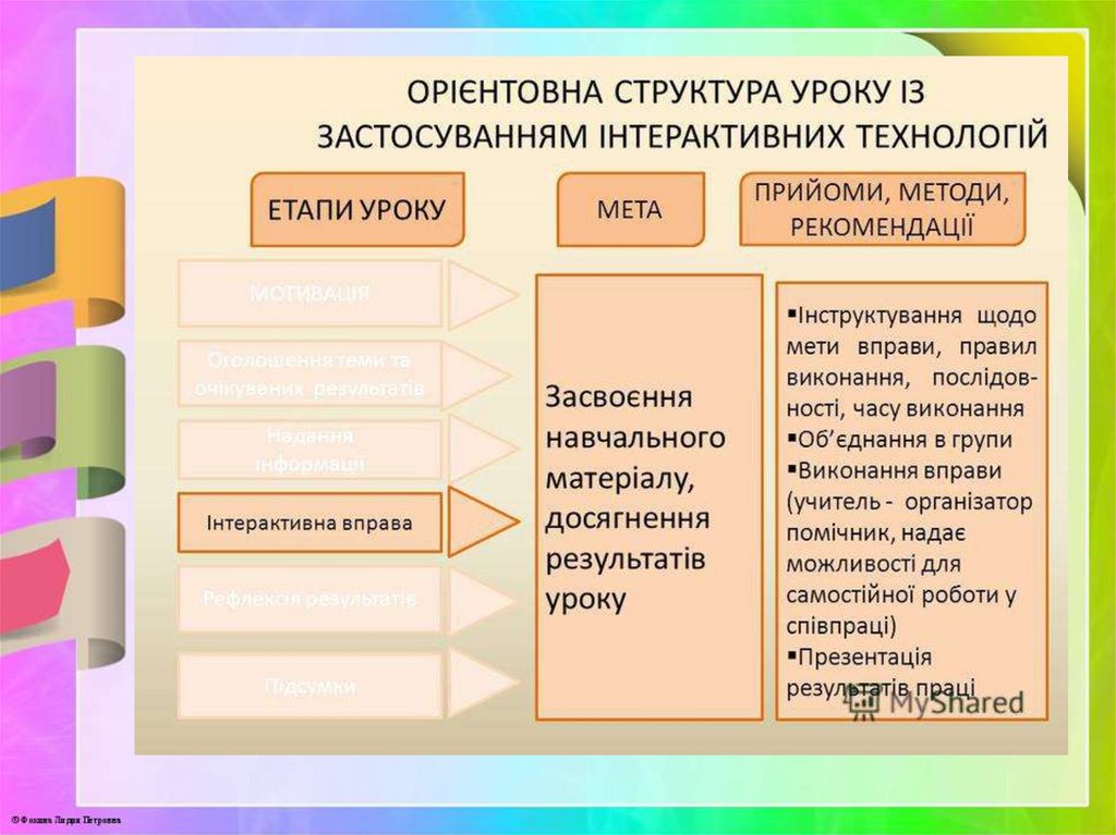 Орієнтовна структура уроку із застосуванням інтерактивних технологій