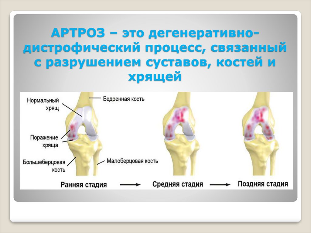 АРТРОЗ – это дегенеративнодистрофический процесс, связанныйс разрушением суставов, костей и