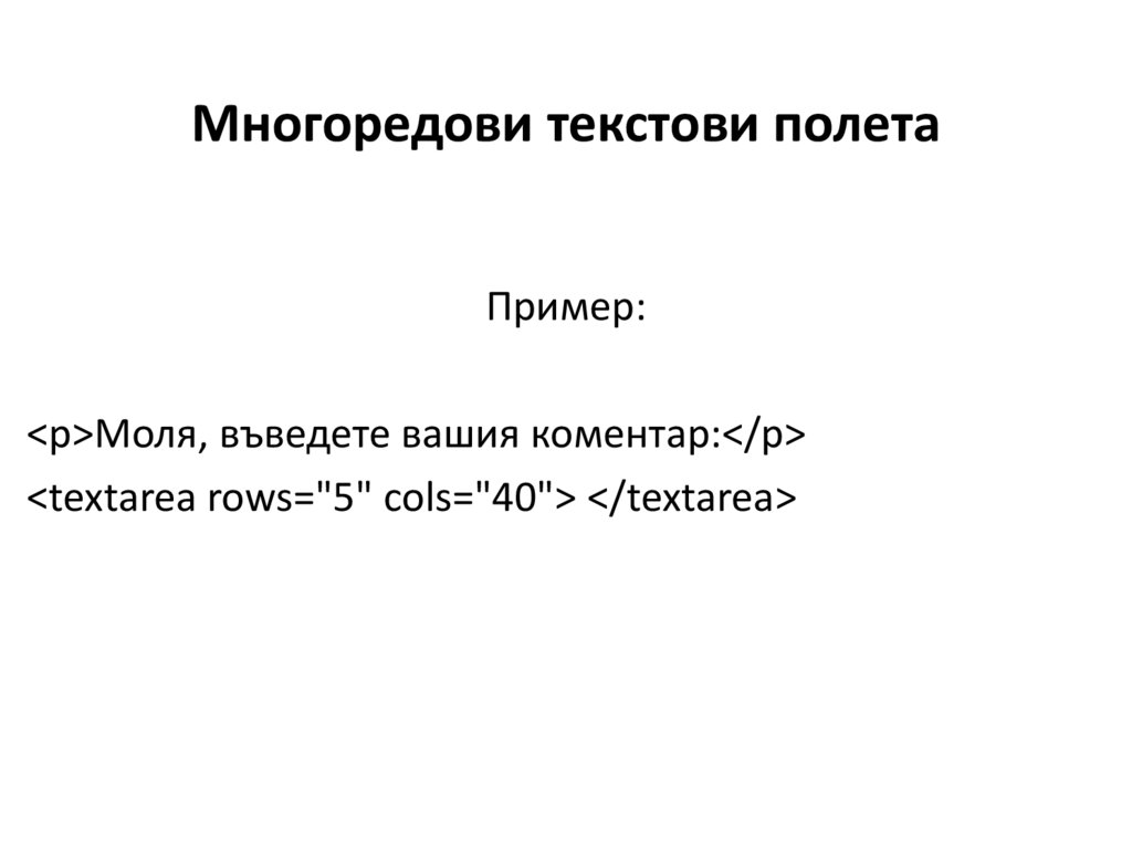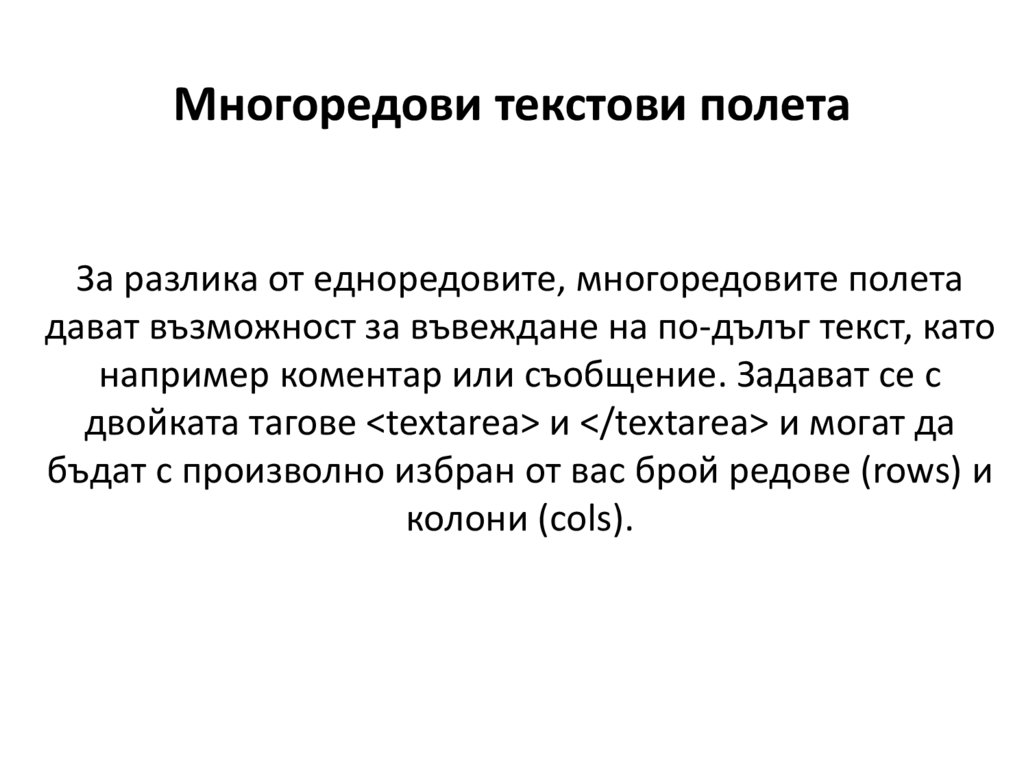 Многоредови текстови полетаЗа разлика от едноредовите, многоредовите полета