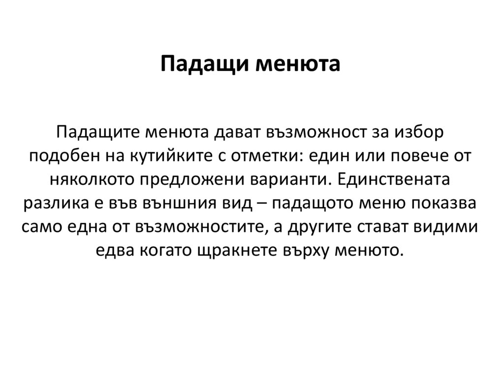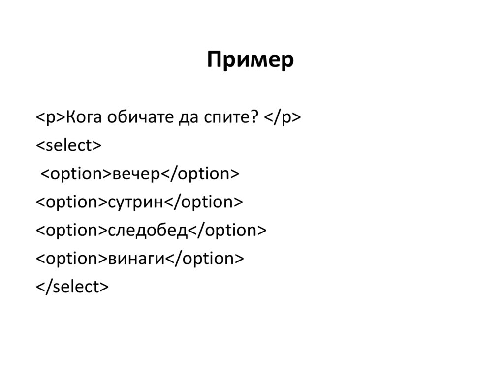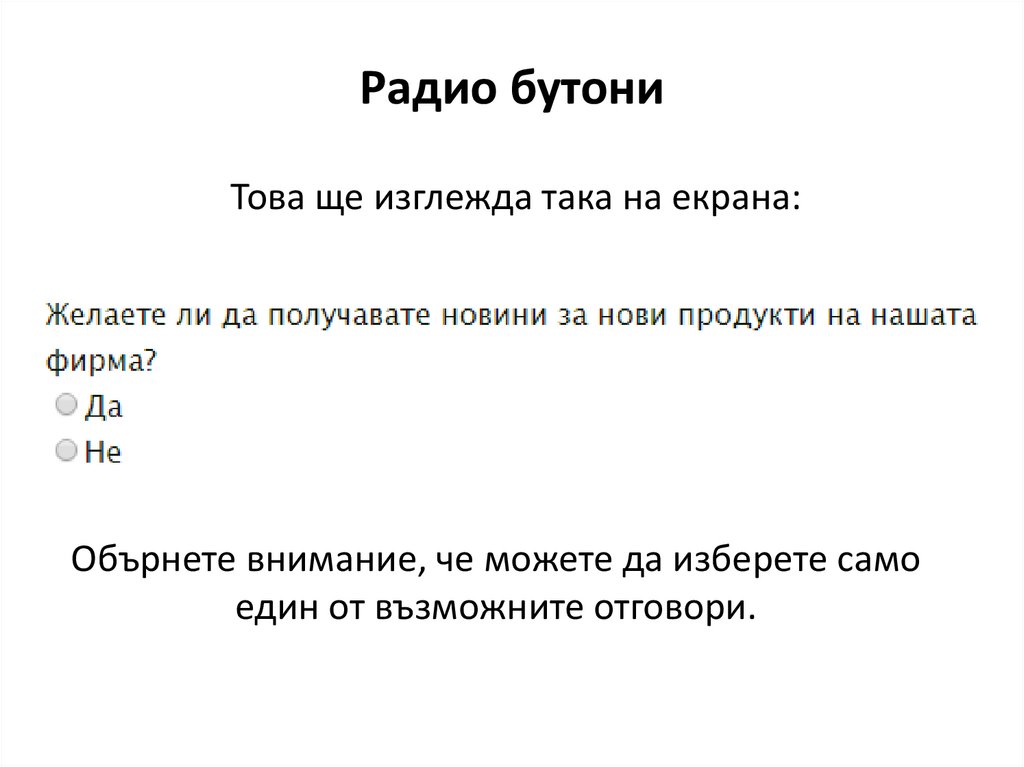 Радио бутониЧрез радио бутоните се избира един от няколко