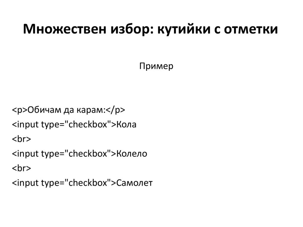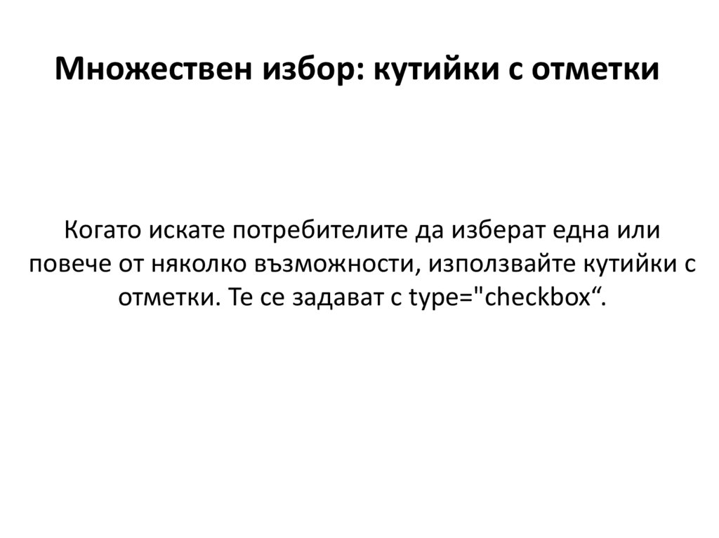 Множествен избор: кутийки с отметкиКогато искате потребителите да изберат една или