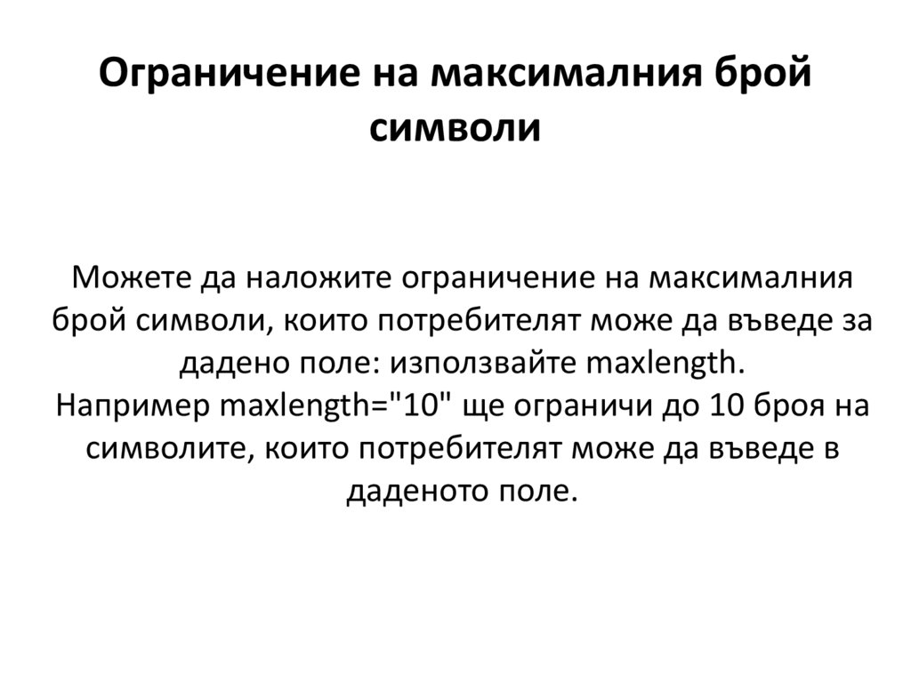 Дължината на текстовото полеДължината на текстовото поле можете да укажете със